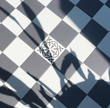The Checkerboard tessellation transforms this residential veranda with timeless black and white contrast. Its classic pattern enhances the home’s exterior charm, creating a sophisticated, welcoming entryway that beautifully blends traditional design with enduring elegance.